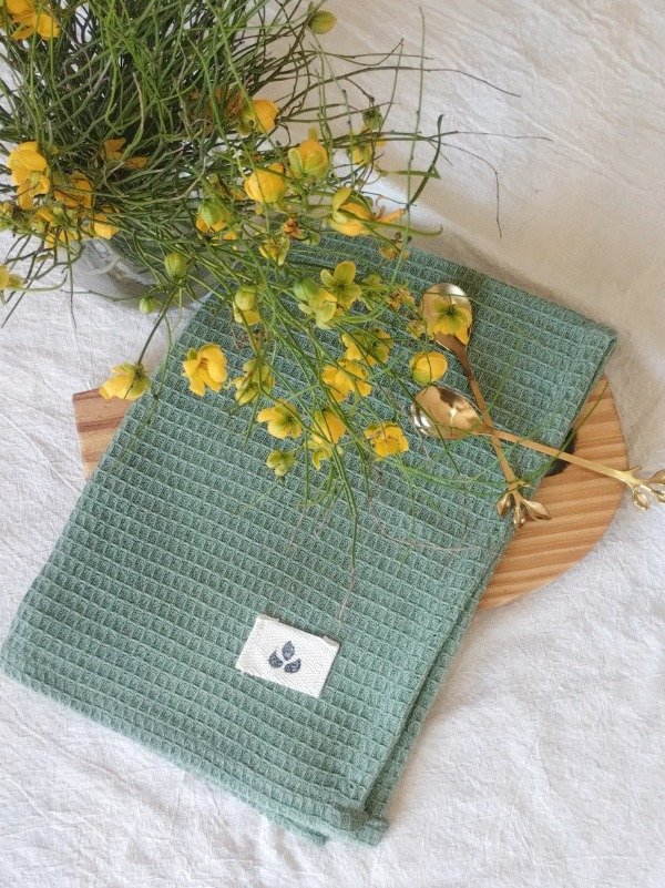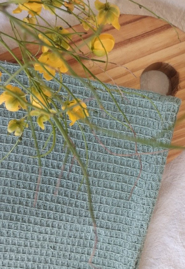 Nuestro repasador de algodón 100%, confeccionado en tela nido de abeja, combina practicidad cotidiana con una estética suave y natural. Su tono verde calma aporta serenidad y un toque de frescura, como un pequeño respiro en medio del ritmo del día.