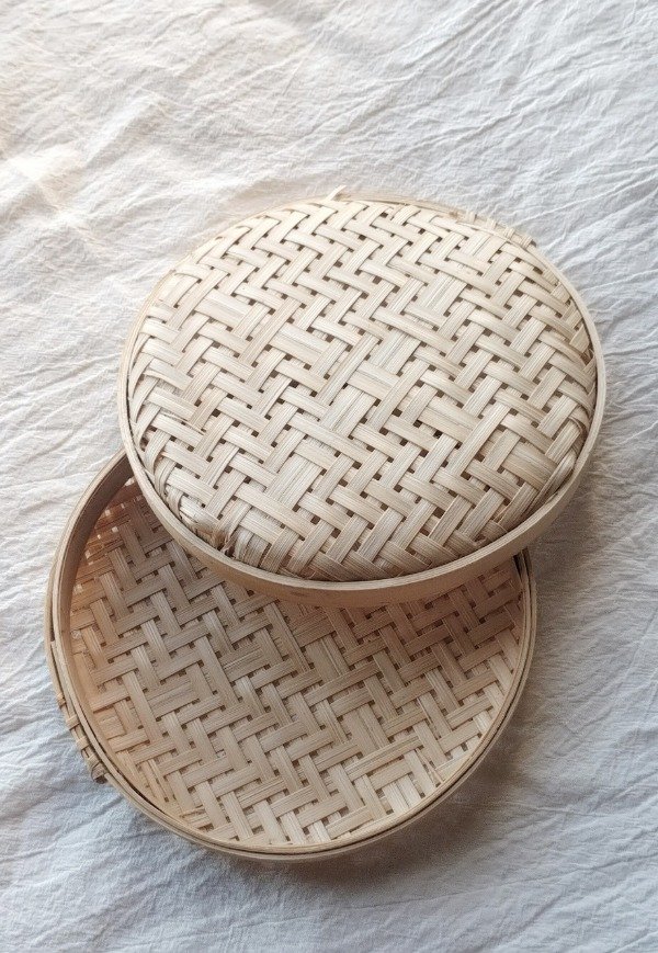 Cada bandeja proviene de Vietnam, donde las fibras de bambú se tejen cuidadosamente siguiendo antiguas tradiciones locales. Su entramado sutil evoca la estética wabi-sabi —esa belleza que habita en lo simple, en lo imperfecto y en lo auténtico—, aportando equilibrio visual y serenidad al espacio.